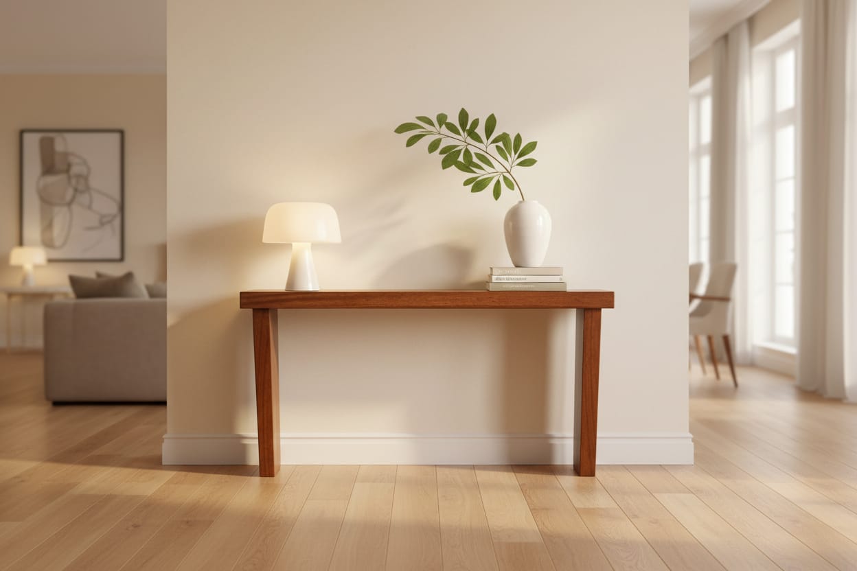 Restored with respect for its classic, simple lines, and crafted from a noble and spectacular material, it combines the character of a bygone era with the warm presence of hand-worked wood. Ideal as an entryway table, low cabinet, or decorative accent in a living room, hallway, or as a surface beneath a mirror, it blends minimalist design with an organic and inviting touch.