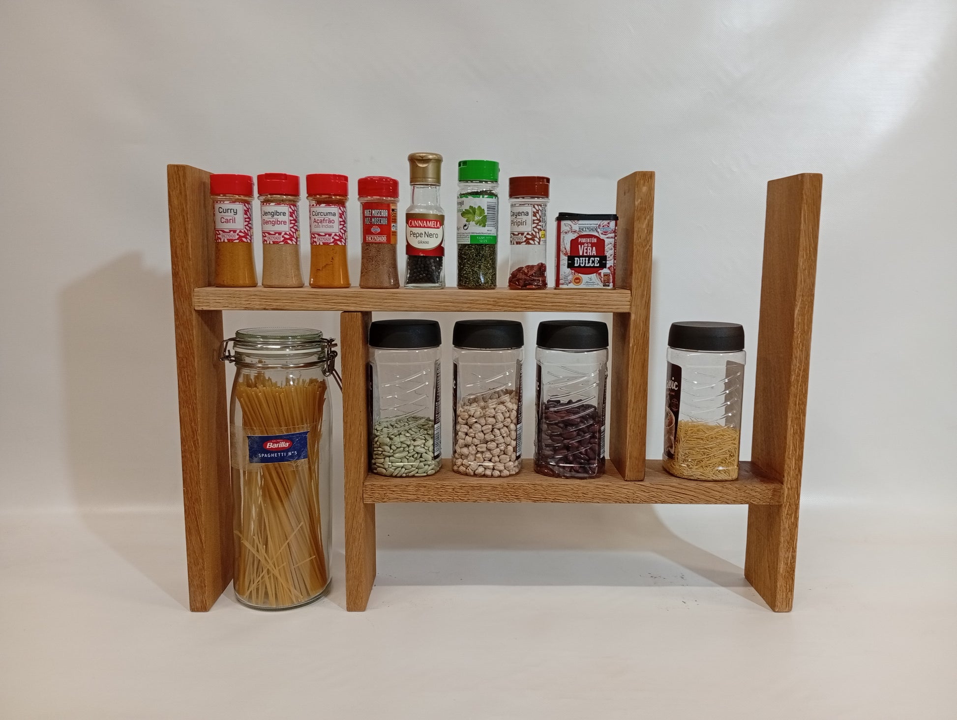 Rangez vos épices, légumineuses ou pâtes avec style et fonctionnalité. SlidingOak est une mini-étagère de cuisine en chêne massif, conçue pour s'adapter à différents espaces grâce à sa structure coulissante et réglable en longueur.
